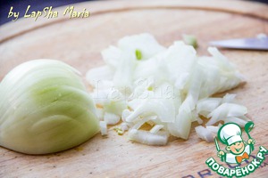 Лук нашинковать кубиками, чеснок мелко изрубить.