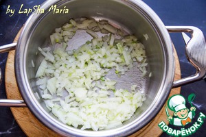 В кастрюльке с толстым дном разогреть смесь сливочного и оливкового масел.