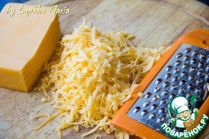 Тем временем натереть сыр. Количество варьируйте по желанию. Мы любим очень сырно, поэтому я использовала много сыра. Сыр можно, конечно, использовать и другой, но именно чеддер придает супу неповторимый вкус.