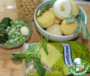 Нут промываем и замачиваем на ночь в воде. Затем сливаем воду в кастрюлю, солим и засыпаем нут. Когда доводим до кипения, через 5 минут отправляем в кастрюлю лук и картофель.