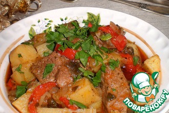 Залить бульоном, поставить в горячую духовку и тушить минут 20-30.