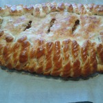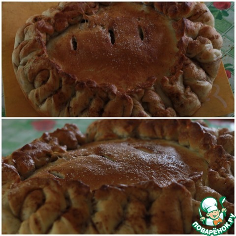Начинка вкусная, можно даже крахмала поменьше добавлять или только один надрез делать, чтобы посочнее было. Края перед "кручением" маслом не смазывала - боялась, что разлепятся, посыпала сахаром и корицей.