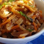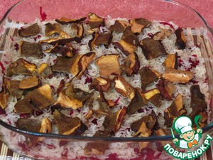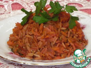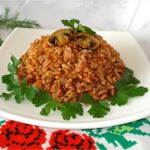 Совсем не давно увидела его, и так он мне понравился, неизбытый, и готовить интересно.Приготовила. Но толи рис у меня попался плохого качества, толи температура в духовке завышена.Или из меня такой повар