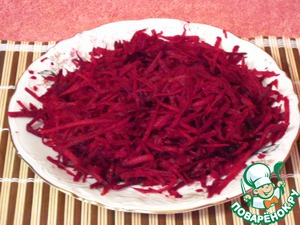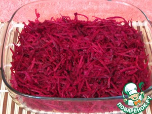 Третьим слоем выложить свеклу. Полить лимонным соком.