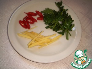 Имбирь очистить и нарезать тонкой соломкой, чили - колечками