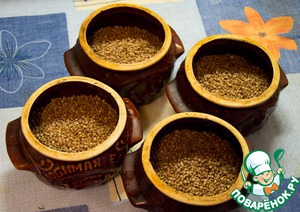 Гречневую крупу засыпаем в горшочки из расчета 0,5 стак. на 1 порцию. Если вы хотите получить более щедрые порции - сыпьте побольше.