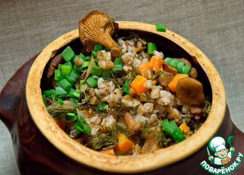 Рецепт «Гречневая каша в горшочке с чесночными гренками»: