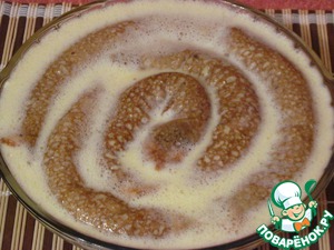 Залить сверху блины. Поставить в духовку на 30 минут. Запекать при температуре 190 радусов.