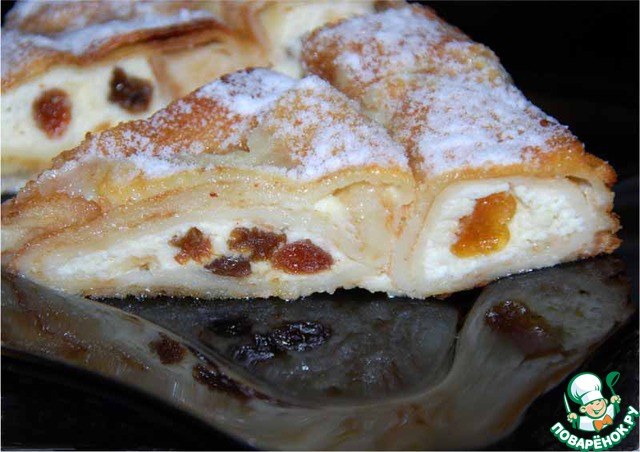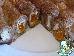 Рецепт «Блинчатый пирог с творогом и курагой»: