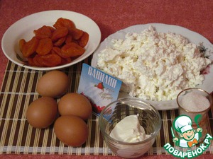 Ингредиенты для «Блинчатый пирог с творогом и курагой»: