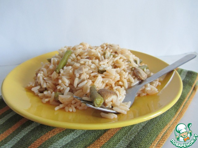 Стручковая фасоль, тушеная с грибочками, лучком и рисом - простое, вкусное блюдо для постящихся, и отличный гарнир для всех остальных!))
