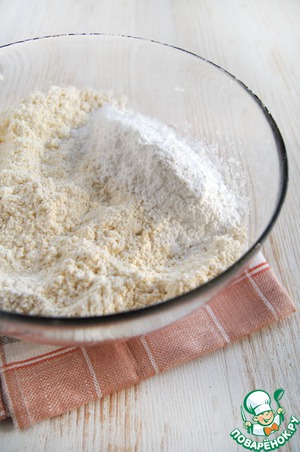 В миску просеять муку, смешать с солью и разрыхлителем.