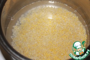 Крупу смешиваем и хорошо промываем под проточной водой. Перетираем ее до тех пор, пока вода не будет сливаться прозрачная