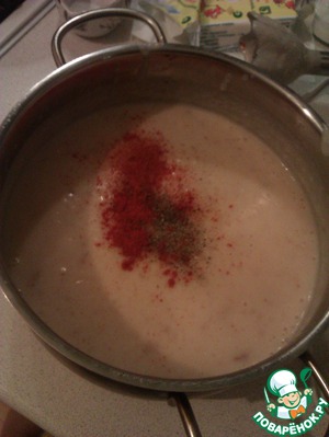Добавляем соль, паприку и черный перец, перемешиваем и даем постоять минут 10
