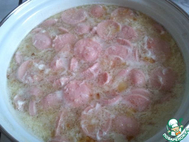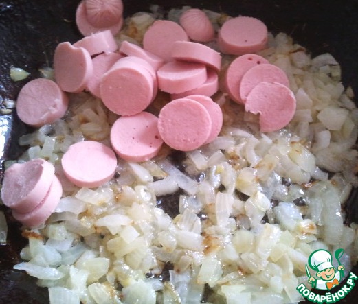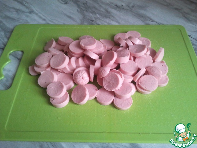 • Сосиски порезать кружочками.