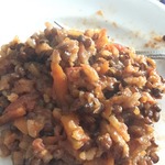 Для этого плова лучше всего подойдут сорта риса, которые держат форму и не развариваются в кашу. Я взяла Ориент. Чечевицу тоже надо подбирать в оболочке, не лущеную. Например, красная или желтая сюда не подойдут.