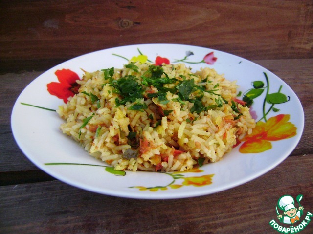 Она, кроме того, что делает цвет блюда более ярким, обладает антибактериальным эффектом, что особенно важно для ослабленного после долгой зимы организма. Доведите воду до кипения, уменьшите огонь, закройте плов крышкой и тушите на протяжении 20 минут, до готовности риса. Очень важно не размешивать плов в процессе приготовления. -