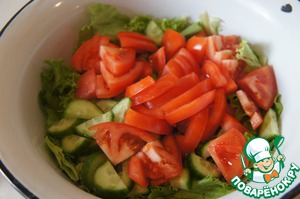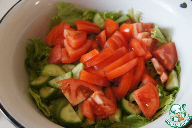 Далее добавить помидоры, нарезанные четверть-колечками.