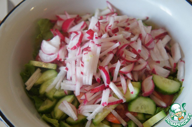 У нас морозы... морозы... минус 27... и это в середине марта ( ( ( А как же хочется весны))) Вот и сотворила такой салатик... Старалась приблизить весну)))