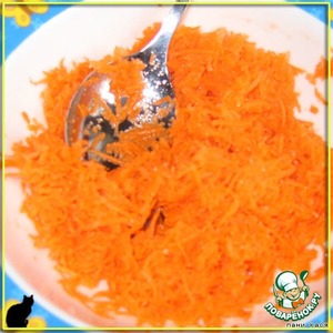 Потереть морковку на мелкой терке, засыпать сахаром.