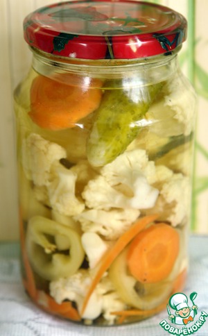 - Ассорти овощное (маринованные овощи, здесь набор может варьироваться, в зависимости от того, что у вас есть в наличии) — 250 г