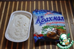 Отправляем туда же творог. Хорошо взбиваем. Последним добавляем крахмал.