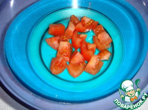 Порезать в миску помидор.