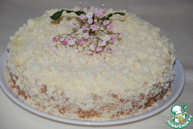 Нарезать извлеченную центральную часть торта на мелкие кубики либо порвать руками в крошку.