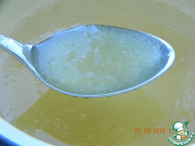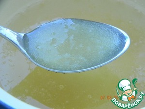 Желатин замочите в 250 г холодной воды.