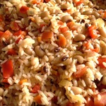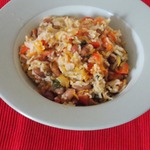 Сегодня у меня вкусный острый гарнир из красной фасоли и риса. Обычно мужчине я его подаю к домашним колбаскам или к ребрышкам запеченным, но он очень самодостаточен и сытен, и сама я его кушаю как отдельное блюдо.