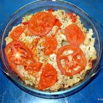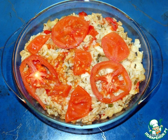 Выкладываем в горшочек, сверху укладываем кружок помидорки, ставим в духовку на 30 минут на 200 градусов