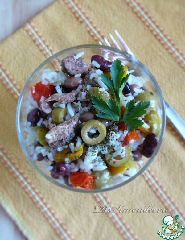 Рецепт «Рисовый салат с фасолью и тунцом»: