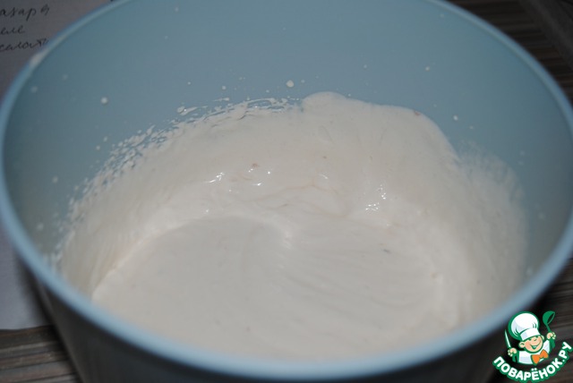 К сливкам добавить оставшийся йогурт. Все взбить.