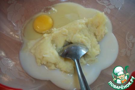По истечение этого времени добавляем яйцо, соль, картофельное пюре