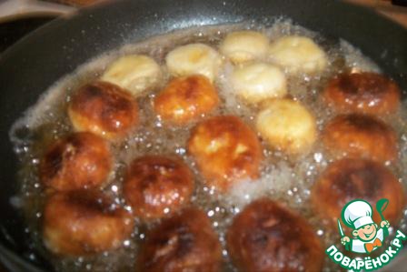 В глубокую ёмкость (у меня сковорода) наливаем растительного масла, так чтобы пышки плавали в нём, и очень хорошо его нагреем. Пекутся пышки очень быстро, только успевай переворачивай и очень хорошо поднимаются.