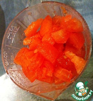 Помидоры очищаем от кожицы и семян нарезаем кубиками
