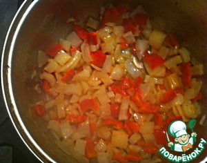 • В кастрюле где планируете готовить дальше - на сл. масле обжариваем сельдерей, лук и перец до мягкости