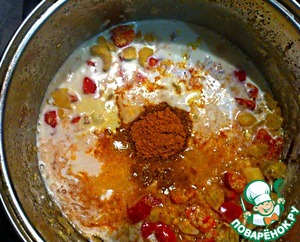 • Пришла очередь помидоров, сливок, шерри, карри и соли.