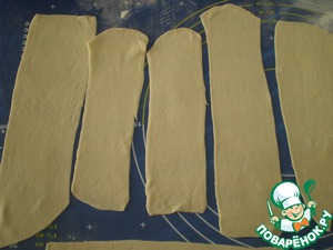 Замесим очень крутое тесто. Поделим на 3 части. Раскатаем тонко примерно 1 мм.