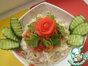 Выкладываем на лапшу наши овощи. И сразу подаем. Приятного аппетита!!