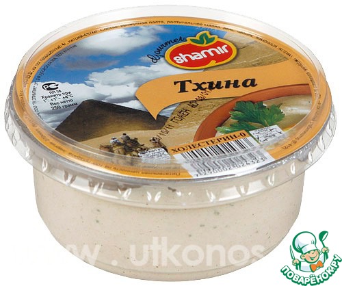 2. Кунжутная паста называется Тхина или Тахини (Tahini), ее можно купить в спец. арабских или израильских магазинах. Так же продается в больших супермаркетах. Упаковок множество, поэтому лучше спрашивать у продовца. Фото добавлю к рецепту.