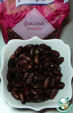 Красную фасоль залейте холодной водой и оставьте на ночь. Воду слейте. Фасоль залейте 3 стаканами холодной воды и отварите до готовности. Отвар слейте.