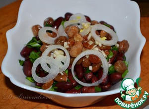 Наверняка такой салат вы не пробовали. Фасоль, изюм, чеснок... интересное сочетание.