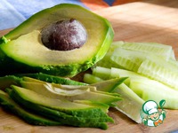Тем временем, снимаем шкурки с огурца и авокадо и нарезаем соломкой.