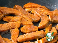 Семгу слегка поджариваем на сковороде без добавления масла. Не более 5 минут.