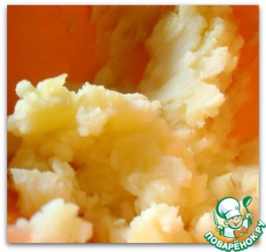 Пока варится чечевица, отвариваем картофель и готовим пюре - толчем, добавляем по вкусу соль. Вливаем в пюре примерно 1/3 стакана воды, постепенно высыпаем муку, получаем эластичное тесто.