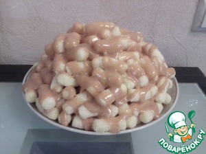 Кукурузные палочки выложить горкой на тарелку. Растопить ирис с маслом. Полить палочки ириской и поставить застывать, пока не застынет ирис.