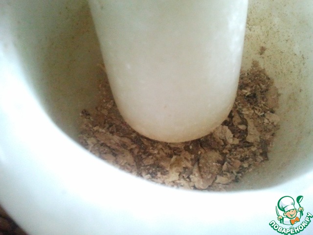 - Грибы (белые сушеные; для начинки 1; щепотка)