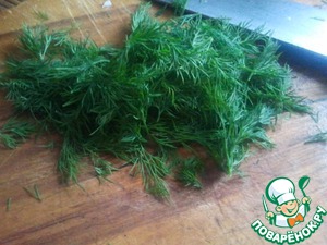 Еще для картофельной начинки с укропа обрываем веточки, измельчаем их ножом.