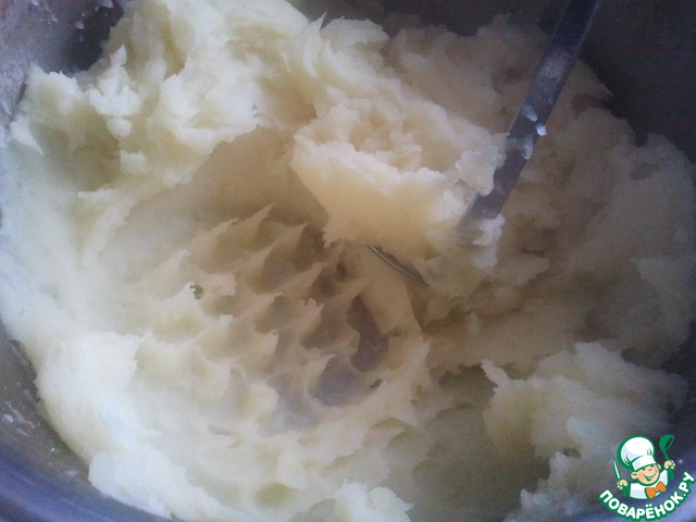 Сначала толчем картофель без всяких добавок, только подсолив. При этом приеме картофель хорошо перетолчется и в готовом пюре не будет комочков.